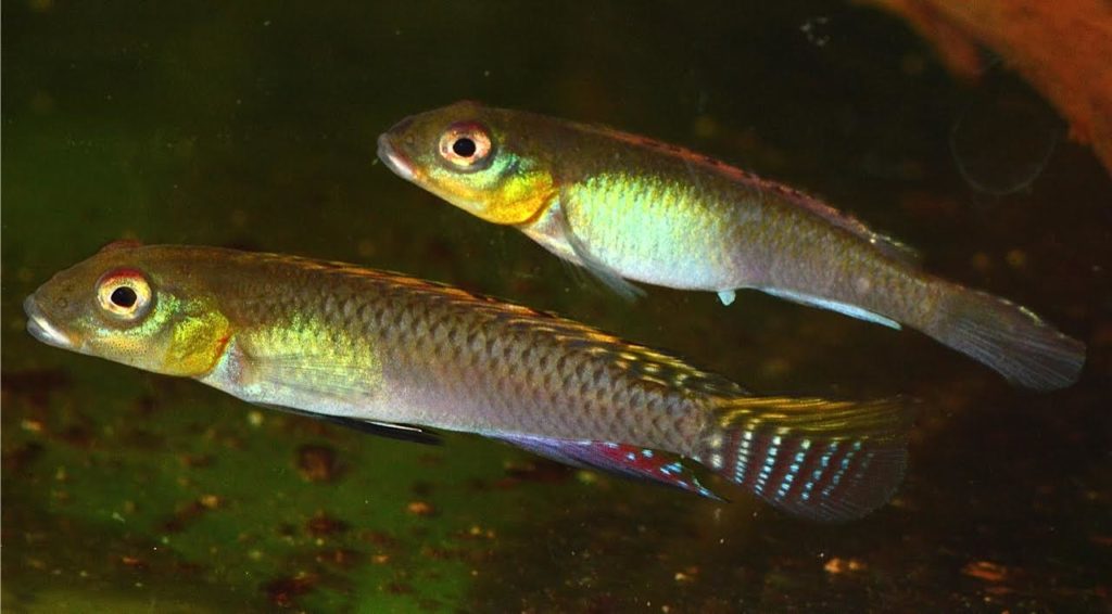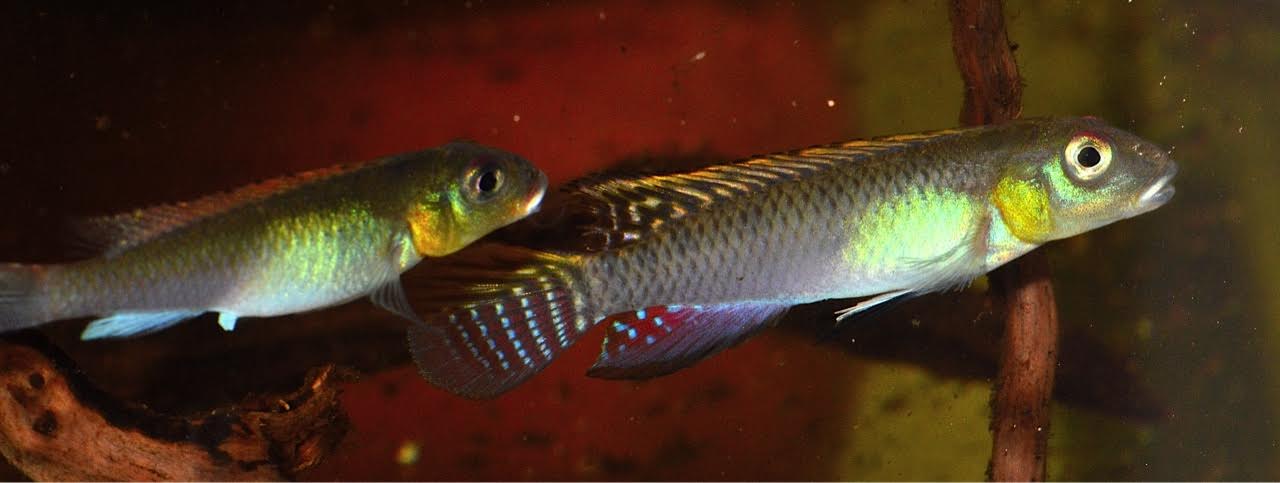 As late as 2004, living specimens of Nanochromis splendens were unknown to scientists and aquarists alike. N. splendens comes from deep in the Congo where few outsiders dare to tread. I received my first pair in the summer of 2014 through the efforts of Oliver Lucanus of Below Water and Steve Lundblad of the Cichlid Exchange. My immediate impression of the fish was that this was the most beautiful of all the Nanochromis species–a vivid swirl of iridescent pastels and emerald reflective scales dazzles the keeper of this fish. Nanochromis splendens is a wonderfully colored species that also carries a kind of elegance in its narrow body shape and overall comportment that is not obvious until you see the fish alive and in person. It is a true connoisseur’s choice.