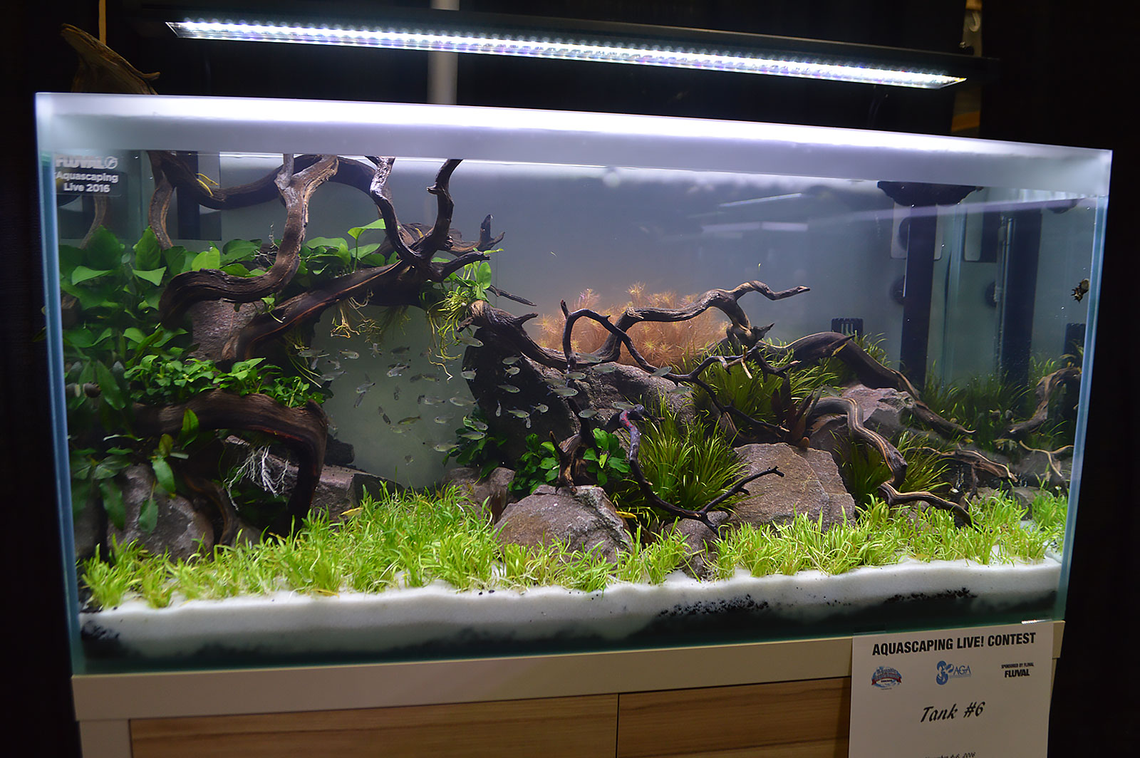 The Aquatic Experience – Chicago, 2016, a 3-day aquarium convention produced by the World Pet Association (WPA) and held in Schaumburg, IL, once again hosted Aquatic Gardeners Association (AGA) sanctioned live aquascaping competitions for both large and small aquaria. The competition, sponsored by Fluval, was strong this year, with many notable entries in both categories.