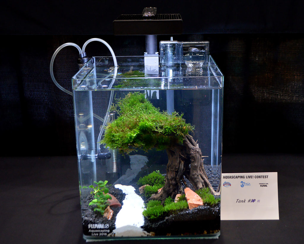 After sharing the results of the Large Tank competition, our coverage of the 2016 Aquascaping Live! competition at the Aquatic Experience–Chicago, continues. This competition, sanctioned by the Aquatic Gardeners Association (AGA) and sponsored by Fluval, is a chance to show off the growing planted tank & aquascaping hobbies.