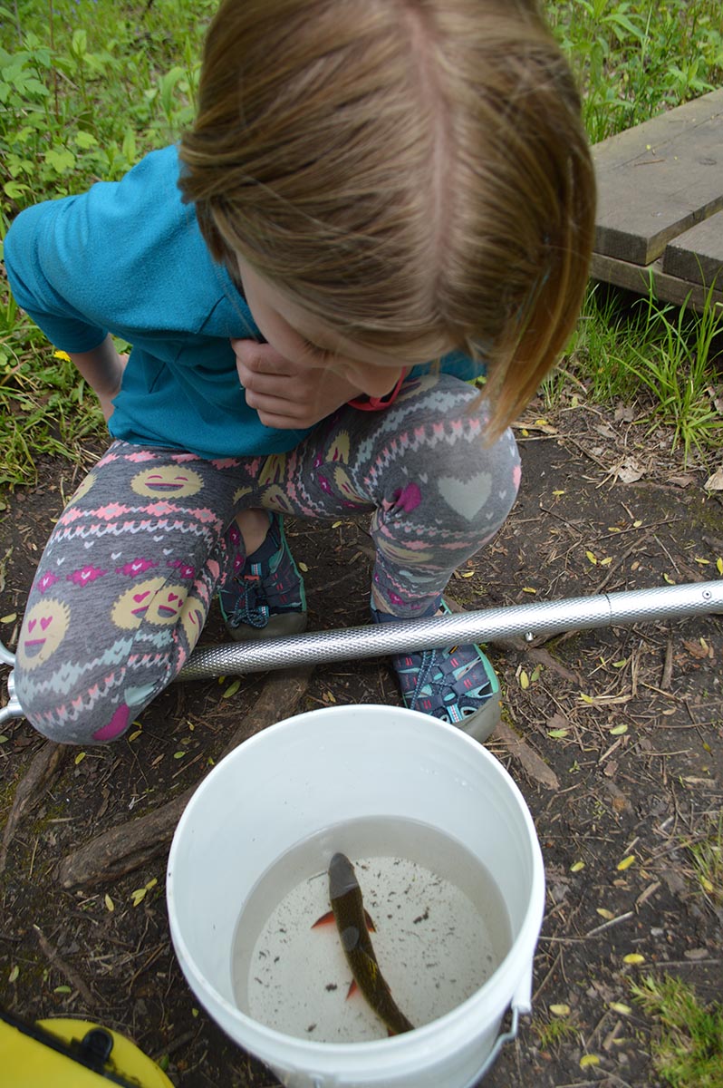 On my first darter hunt, my son Ethan joined me. This time around, it was my 8-year-old daughter, Audrey, who put up with the long car ride and leaky waders to have a bit of fun outdoors. The night before the trip, I gathered up the DNR’s information on the lake we were heading to and showed Audrey all the species of fishes we might encounter. We discussed how to tell them apart, and she instantly latched on to certain species she thought we should bring home for our aquariums. So we set off with a plan in hand.